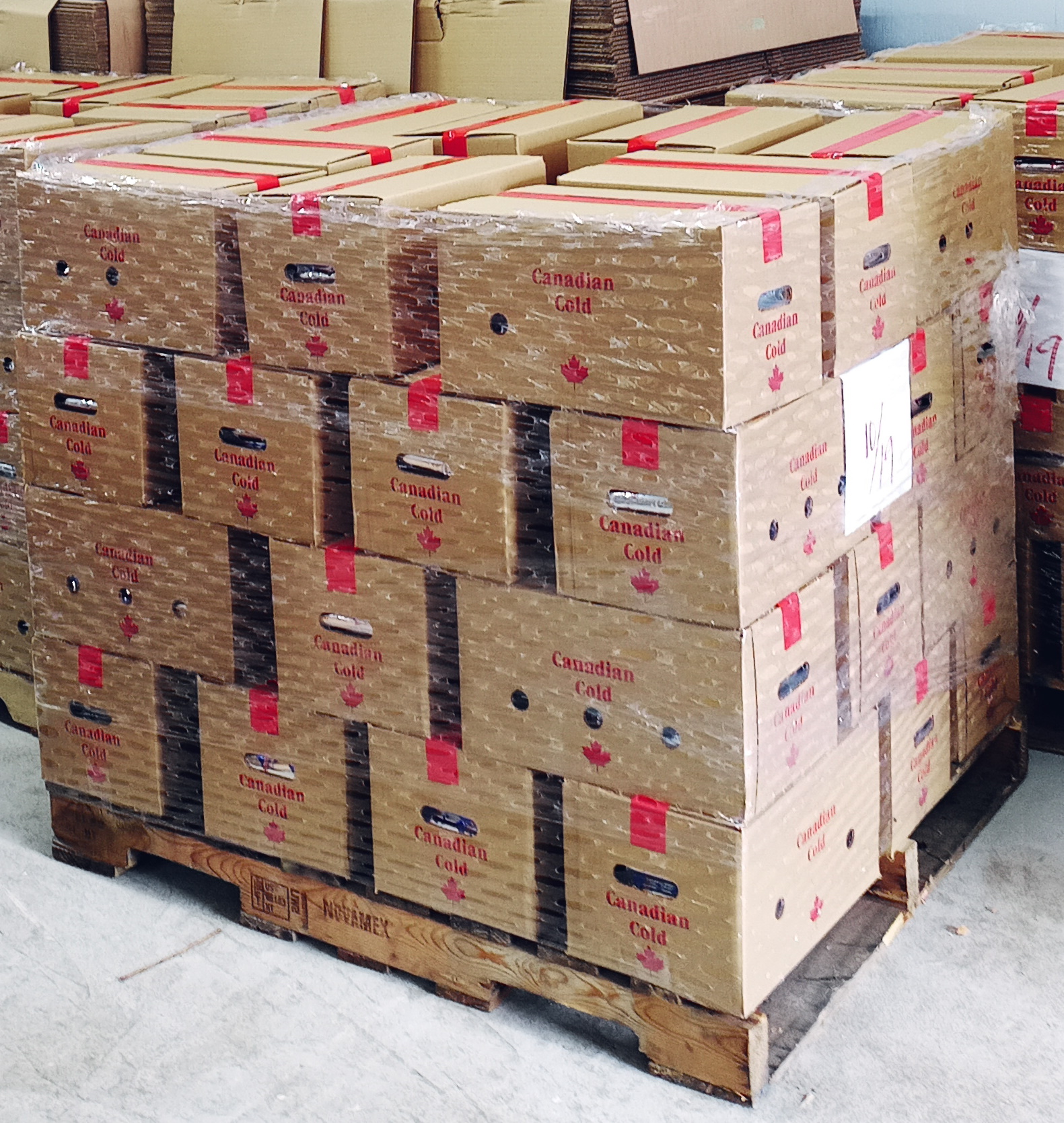 On site, we produce food grade, Canadian Cold brand gel packs for the shipping of live lobster and other seafood products. We offer 2 lb gel packs, sold frozen. Gels are sold in cardboard boxes with 18 gels per box, 36 lb total box weight. |